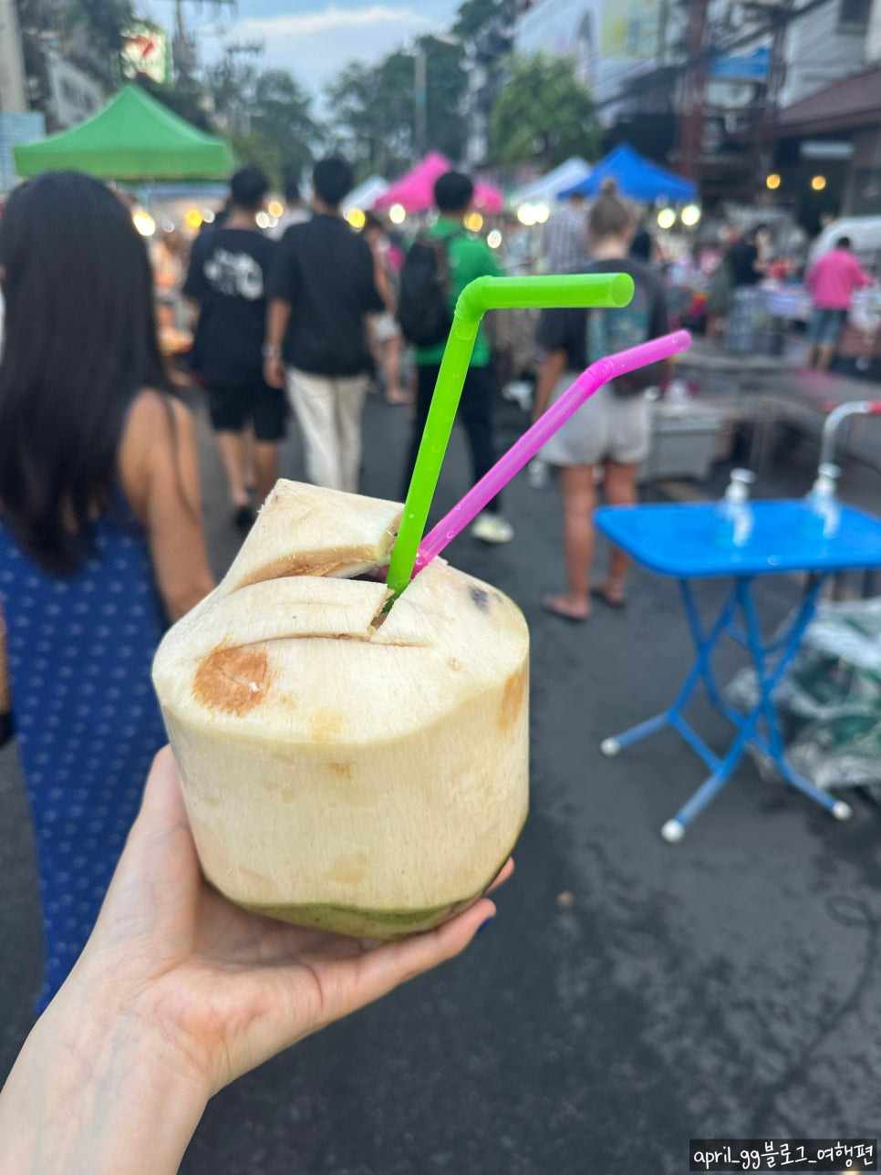 입구에서 큰 코코넛도 30바트에 먹었어요